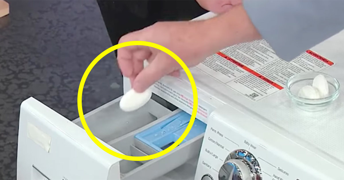 במקום לבזבז זמן רב בניסיון לחטא את מכונת הכביסה, פשוט לכו למטבח, וקחו טבליה של מדיח הכלים. רק תוודאו שהטבליה היא מהסוג שלא עטוף בניילון או פלסטיק.