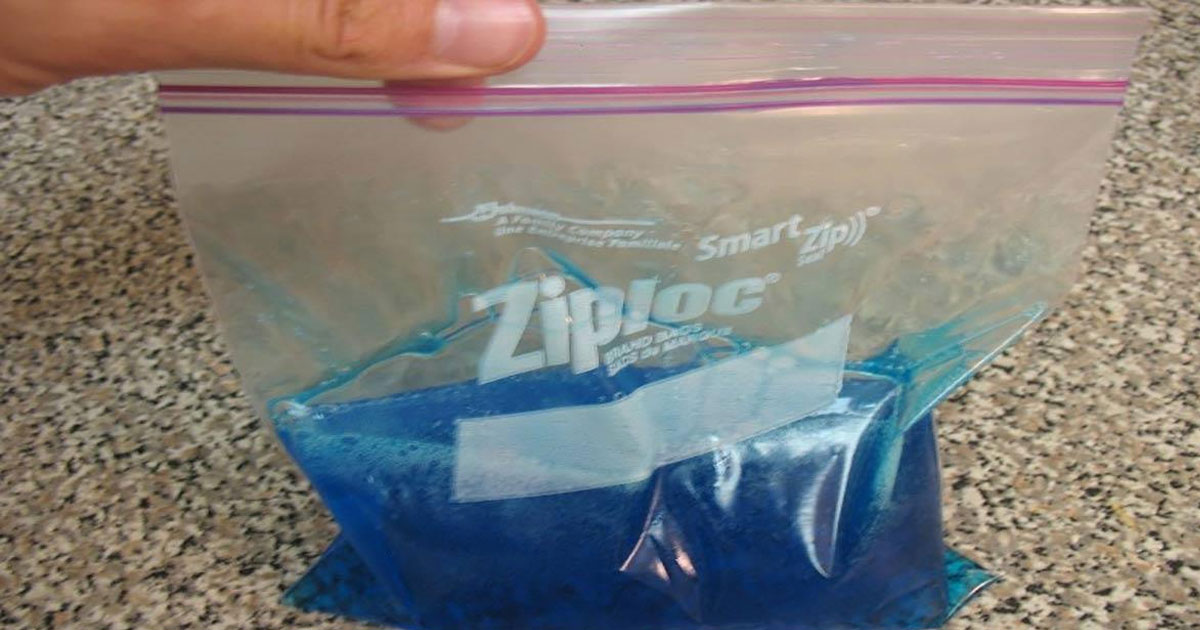 שפכו סבון כלים לשקית זיפלוק כדי להכין שקית קרח רב שימושית. הסבון ישאר קר זמן רב יותר מאשר המים.